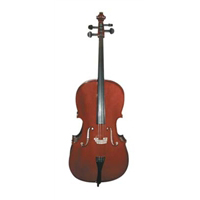 Oxford Cello: Ebony fitted, Hand Carved Solid Spruce Top. Solid Maple Back, Sides and Neck, Fine Tuner Tail Piece, Inlaid Purfling, Mongolian Horsehair Bow, Golden Brown Finish, Includes Case and Bow. Comes with Nylon Bag. Sizes 4/4, 3/4, 1/2 1443-1-1