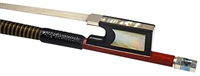 Pernambuco English Cello Bow: Pernambuco English Frog Hand Selected Wood. Fully-lined Sterling Silver mounted, Lizard Grip, Pearl Inlay, Mongolian Horsehair and Octagon Stick. EMV-1-1